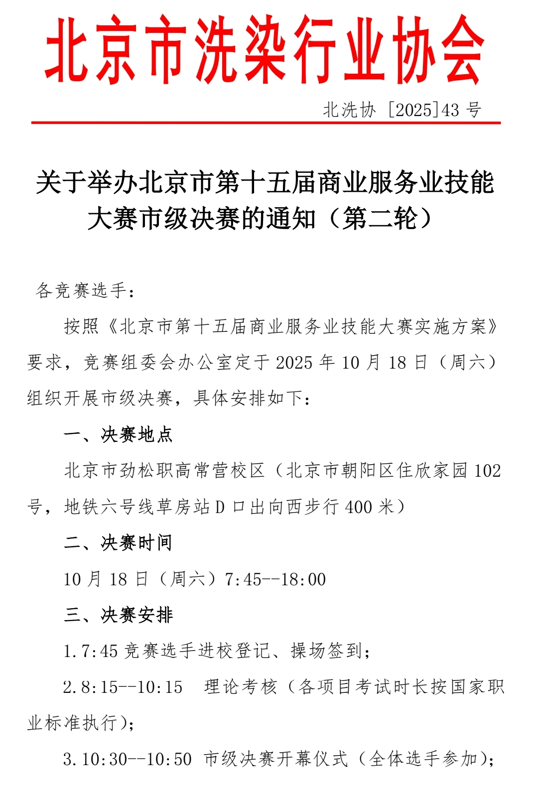 北京市第十五届商业服务业技能大赛洗衣师竞赛项目决赛通知2025年09月23日 -