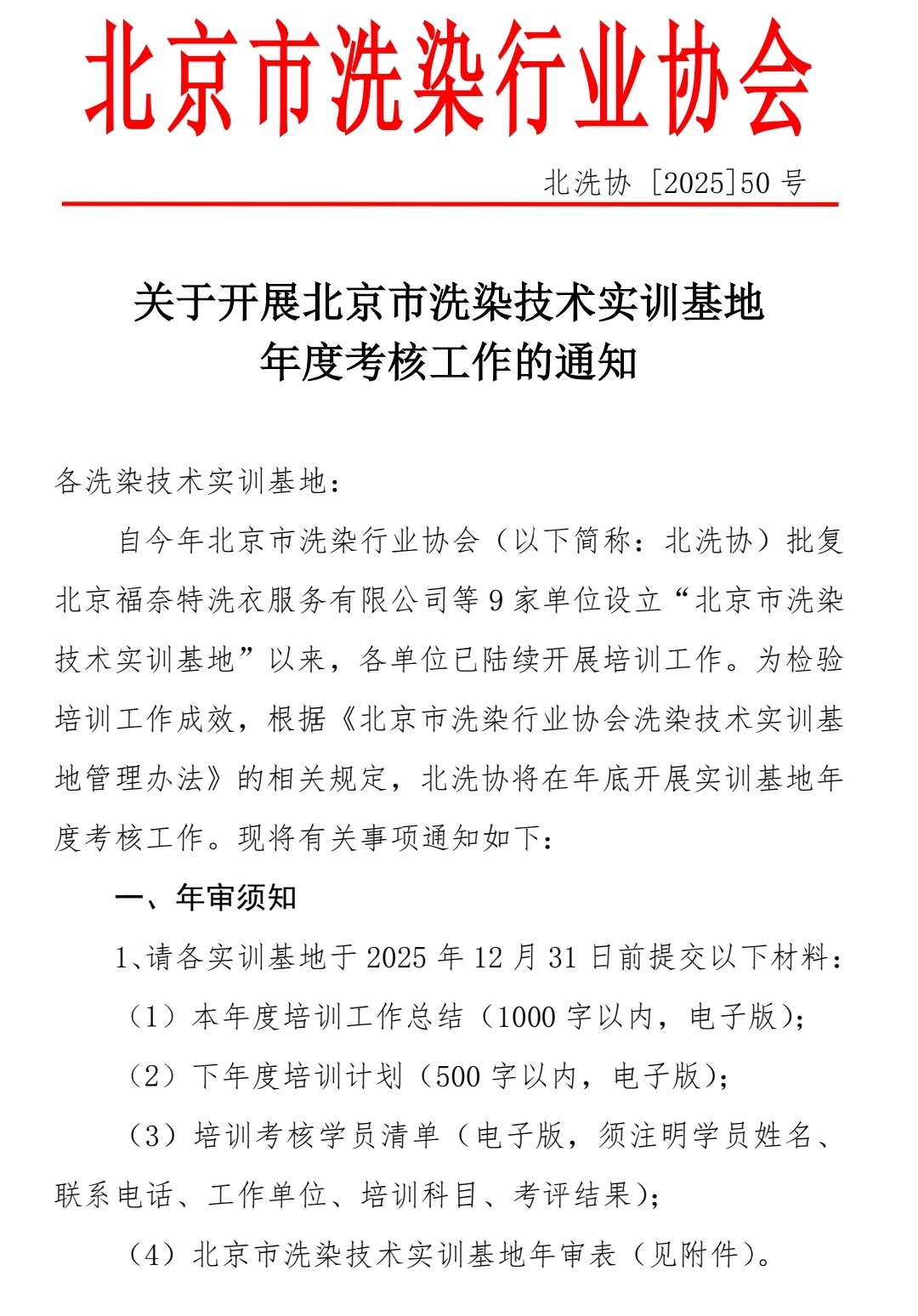关于开展北京市洗染技术实训基地年度考核工作的通知2025年12月13日 -