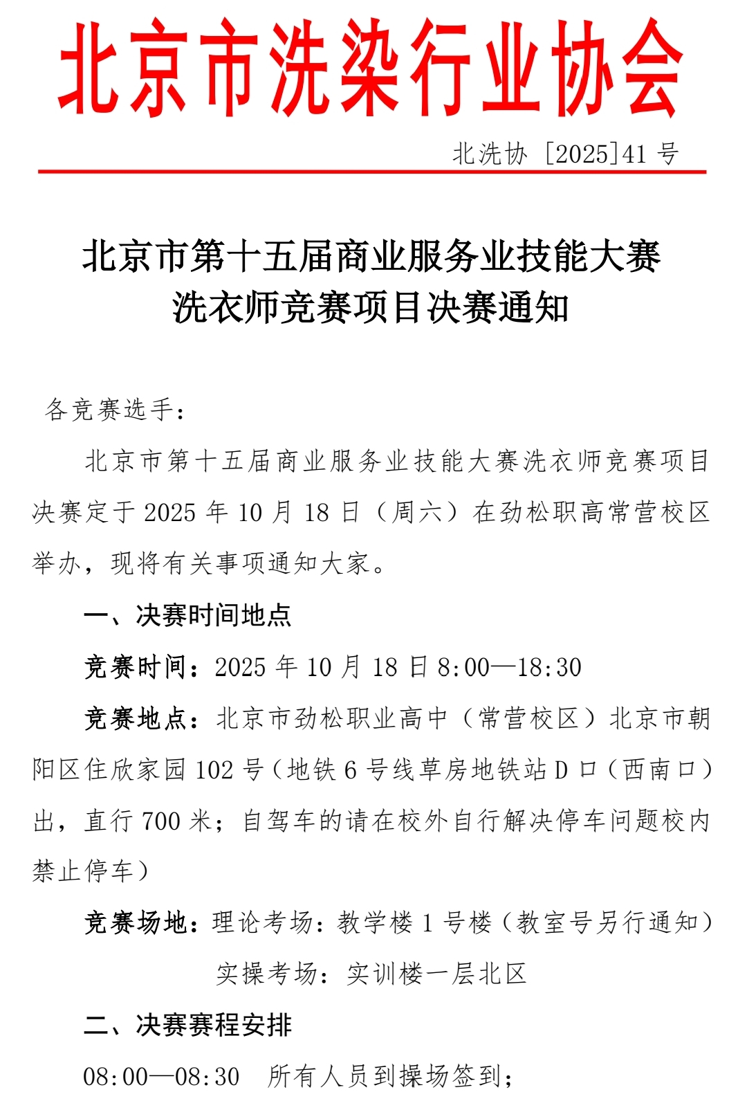 北京市第十五届商业服务业技能大赛洗衣师竞赛项目决赛通知2025年09月23日 -