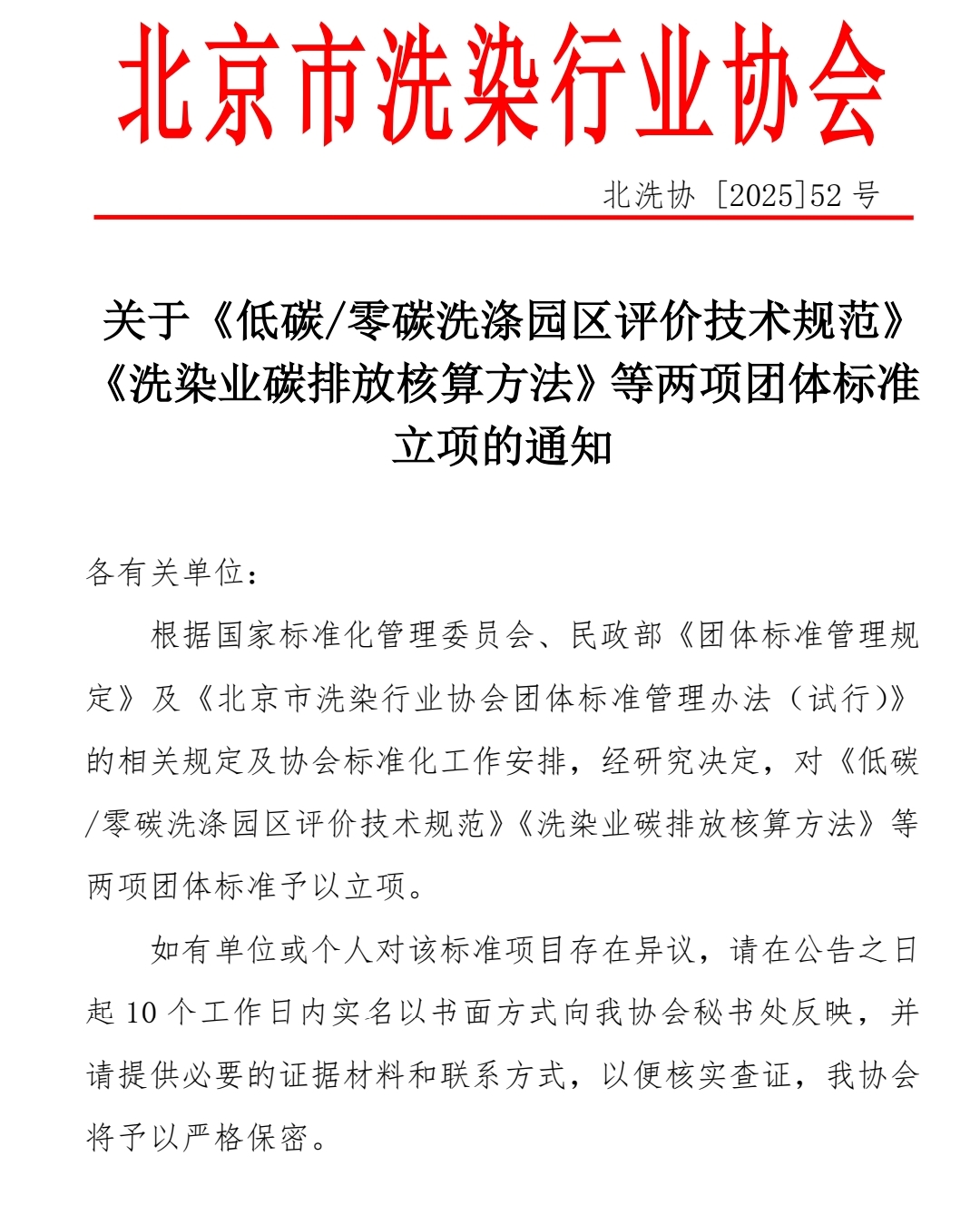 关于《低碳/零碳洗涤园区评价技术规范》《洗染业碳排放核算方法》等两项团体标准立项的通知2025年12月30日 -