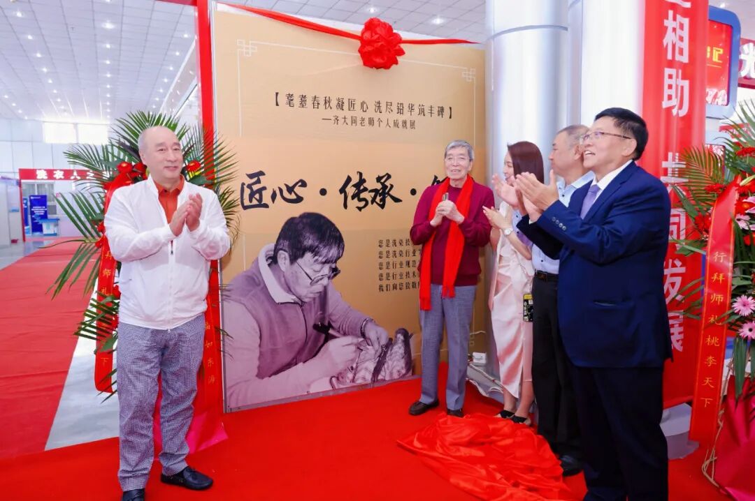 活动现场,“齐大同老师从业六十载成就展”成为全场焦点。在嘉宾见证下,李钇霖副秘书长、冀平副书记、李贵良主任、支文章秘书长、郭继东会长与齐大同老师一同为展览揭幕。展区内,泛黄的工作照、磨损的洗染工具照片、写满批注的技术笔记的照片,静静诉说着齐老师六十年深耕洗染行业的坚守。