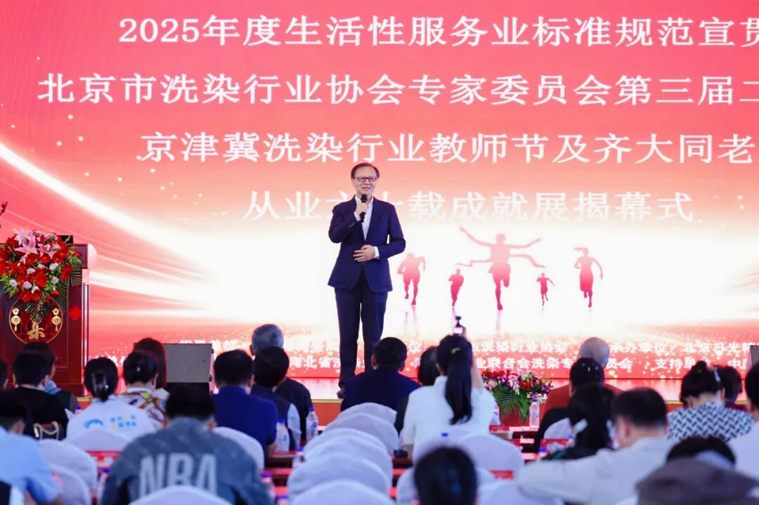 针对北京市洗染行业协会专家委员会的工作,他给予高度肯定,指出委员会在技能竞赛组织、团体标准编制、专业人才培训等方面的成果,为全国洗染行业的规范化、专业化发展提供了可复制的“北京经验”。最后,他寄语全体从业者:要以齐大同老师为榜样,在坚守匠心的同时拥抱创新变革,借助标准引领与技艺传承的双轮驱动,共同推动洗染行业向高质量发展阶段稳步迈进。