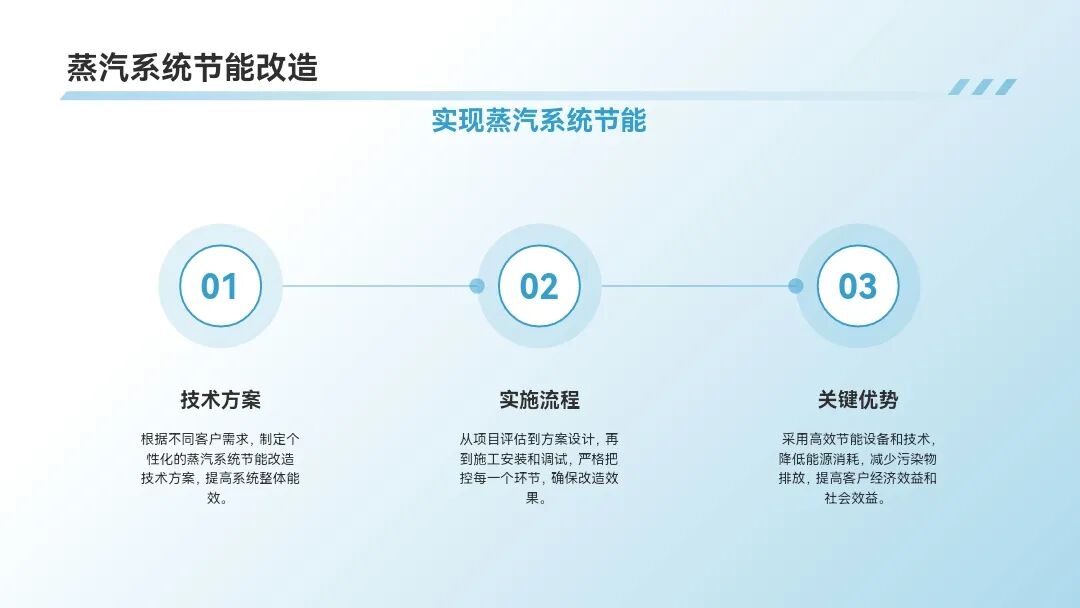 个性化定制方案,从评估、设计、施工到调试全程把控,降低能耗、减少排放、提升效益。