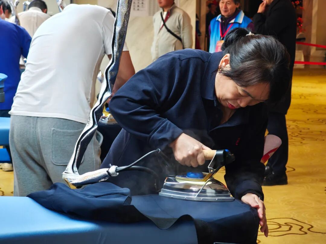 本次洗衣师竞赛自启动伊始便点燃行业热情,成为众多从业者切磋技艺、展现风采的专业舞台。赛事吸引力十足,共吸引430名选手踊跃报名,彰显行业对专业技能提升的高度重视;首轮选拔竞争激烈,112名选手凭借扎实功底脱颖而出晋级复赛;复赛阶段高手过招,32名选手凭借精湛技艺突出重围斩获决赛入场券,最终30名选手齐聚决赛现场展开角逐。决赛环节设置科学且严苛,选手需双线考验专业能力:理论知识考核覆盖服装面料、皮革、化料、设备、服务规范等洗染全领域内容,检验从业者知识储备广度;实操技能考核则聚焦核心业务,要求选手在35分钟内完成西装西裤熨烫,15分钟内精准完成污渍去渍作业,全方位丈量专业硬实力,上演了一场精彩绝伦的行业巅峰对决。
