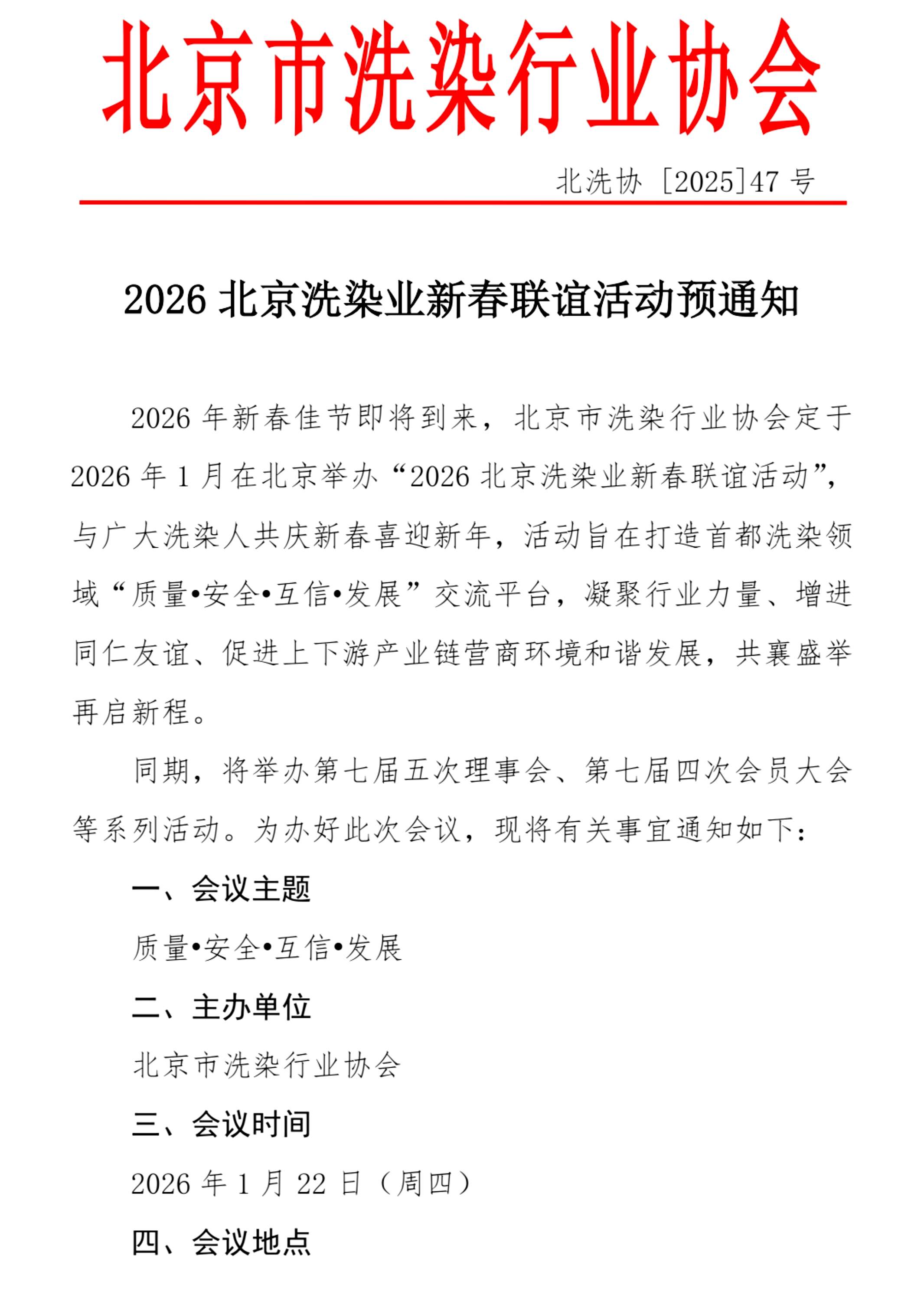 2026北京洗染业新春联谊活动预通知2025年12月01日 -