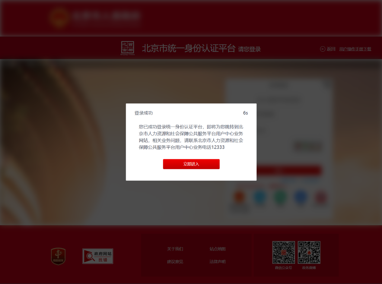 1. 登陆成功后,按提示点击立即进入或等待自动跳转。
