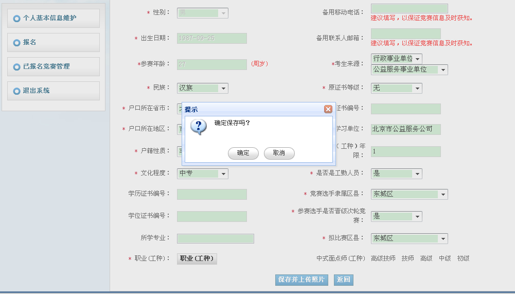 2. 点击页面下方的“保存”或“保存并上传照片”,完善个人报名信息。