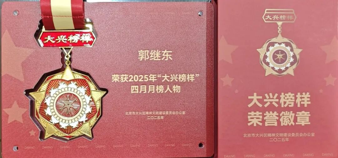 喜报 | 北洗协会长、北京日光董事长郭继东荣膺2025年“大兴榜样”四月月榜人物
